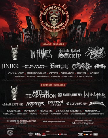 Com essa combinação, o Bangers Open Air se firma como um dos festivais mais completos do cenário nacional, unindo metal melódico, thrash, folk, hard rock, metalcore e muito mais.